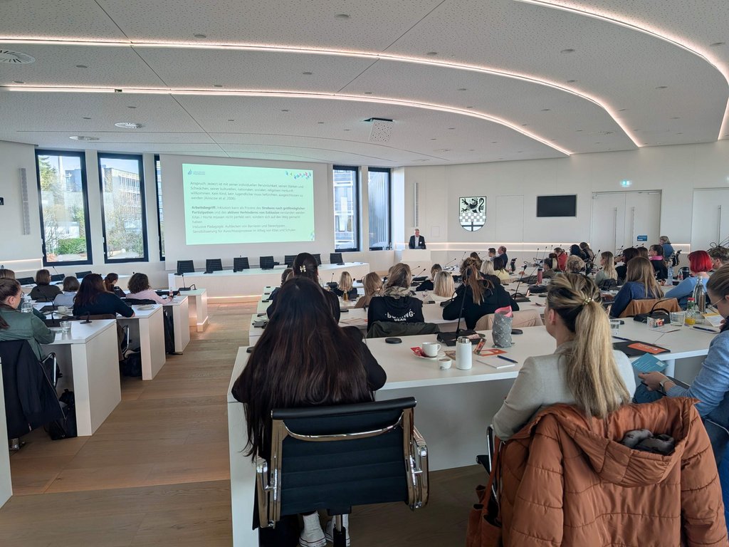 Zahlreiche Fachkräfte nahmen an der Veranstaltung im Sitzungssaal des Kreishauses Lüdenscheid teil, um sich auszutauschen und neue Impulse für ihre Arbeit mitzunehmen. Eine im Jahr 2025 durchgeführte Umfrage in allen Kitas im Zuständigkeitsbereich des Kreisjugendamtes hatte gezeigt: Der Wunsch nach fachlicher Vertiefung, Fortbildung und kollegialem Austausch ist groß. Der Fachtag griff diesen Bedarf gezielt auf und stieß damit auf großes Interesse bei den Fachkräften.
