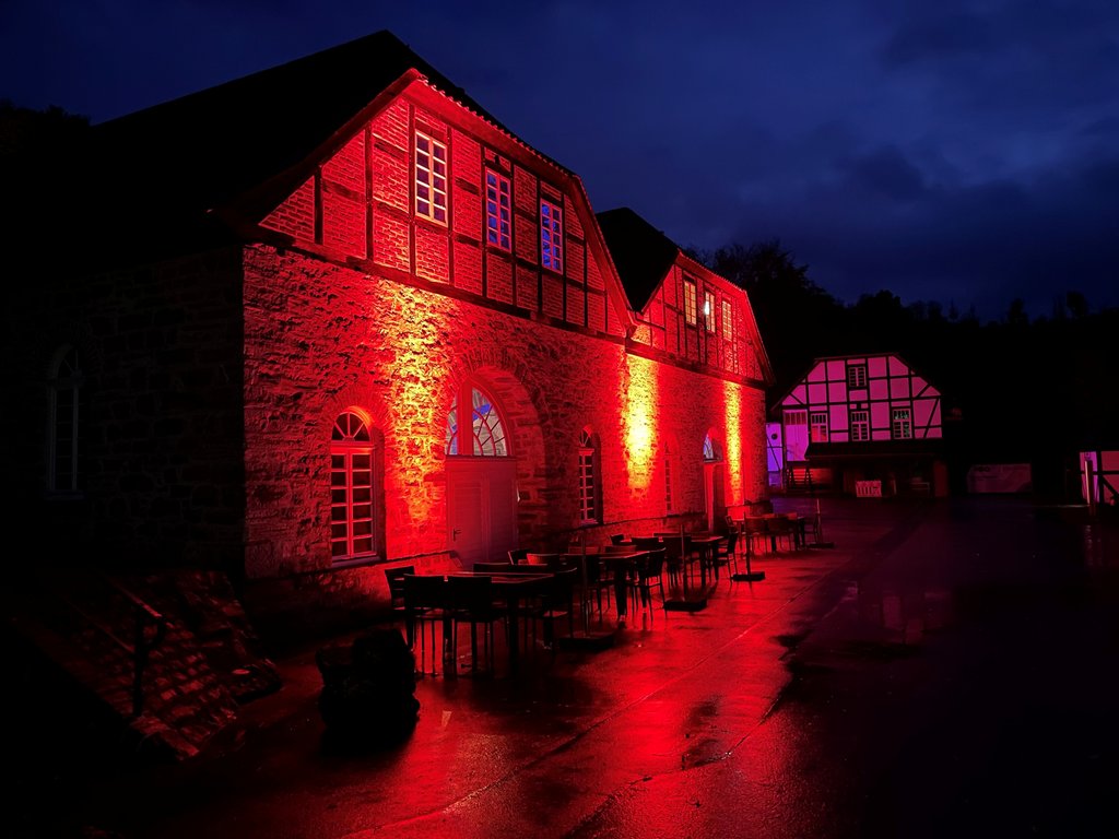 Mit gruseligen Kostümen trotzen die Kinder Wind und Regen. Unterwegs an der historischen Eisenhütte waren Wesen in phantasievollen Kostümen wie Hexen, Skelette oder Gespenster. Verkleidet meisterten die Kinder einen Horrorparcours und gruselige Spiele sowie eine Schnitzeljagd. Beim Kreativangebot konnten kleine Monster gebastelt werden. Zwischendurch konnten sich die Kinder an der Horrorbar bei Speisen und Getränken passend zum Thema stärken. Zum Abschluss ging es zum Stollen. Wer mutig war und sich traute an Franziska, der bösen Frau des Hüttenmeisters, vorbei zu gehen, erhielt eine kleine Überraschung.